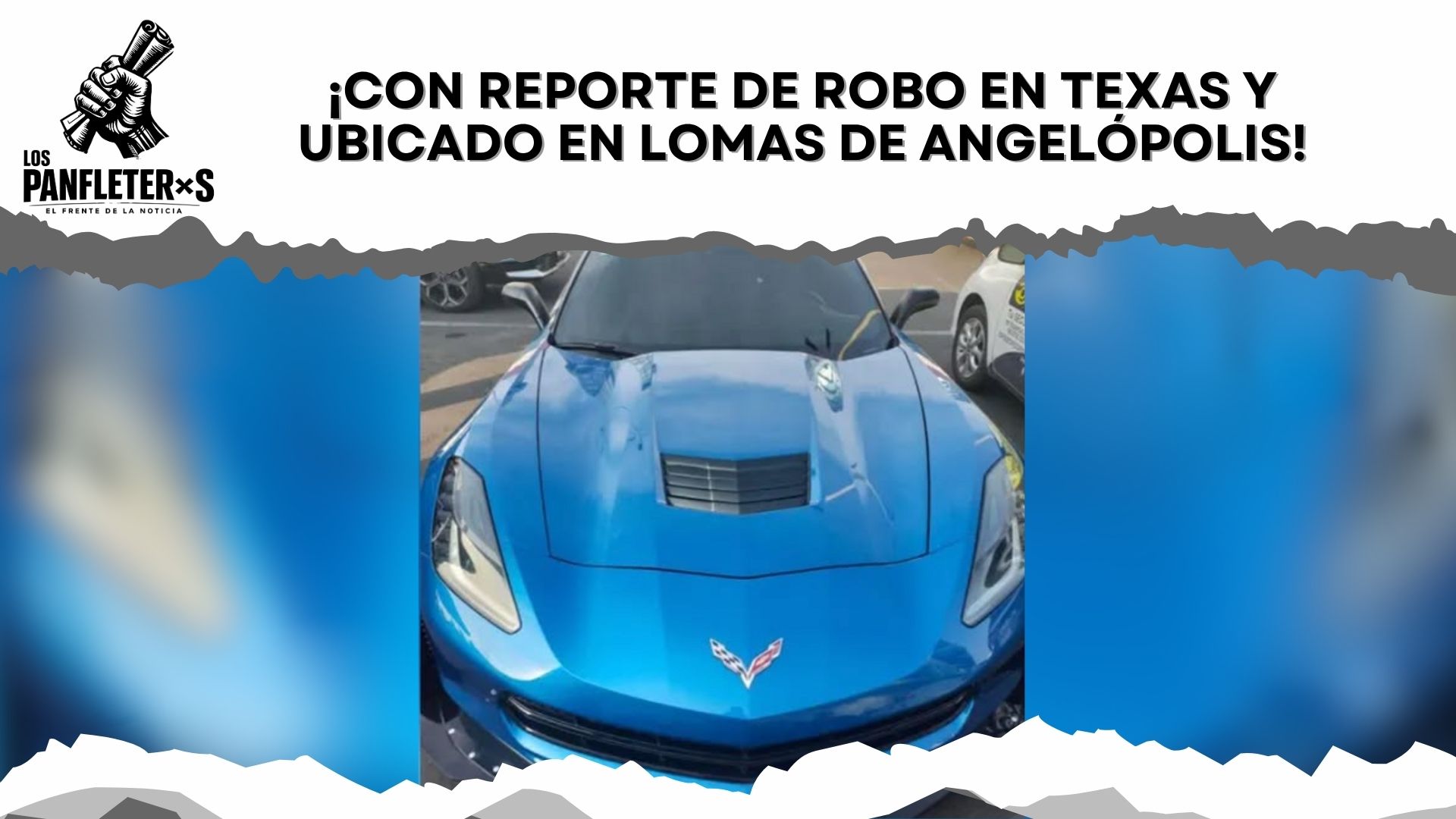 Un Corvette azul mamalón que según venía robado desde Texas lo hallarón en el estacionamiento del Chedraui Selecto de Lomas de Angelópolis.