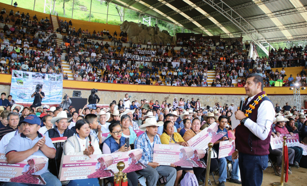 En Zacapoaxtla no se andan con cuentos y ahora sí le están metiendo duro al campo. Casi dos mil paisanos se dieron cita pa’ ver cómo les caía maquinaria de la buena, apoyos pecuarios, acuícolas y hasta pa’ la cafeticultura.